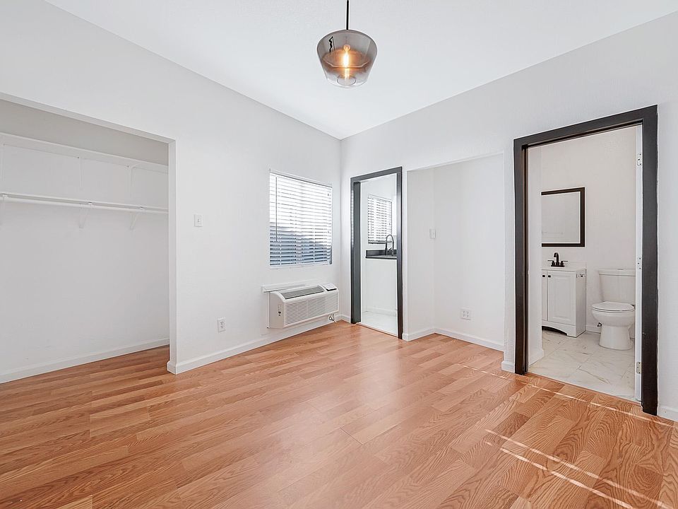 1 Month's Free Rent Available for private and virtual showings. Newly renovated, modern, top floor studio unit with brand new kitchen, bathroom and wood flooring throughout. Spacious and open concept living room with large windows, A/C and elegant light fixture. Kitchen features new cabinetry with stone counters, matt black hardware and new appliances. Brand new bathroom features modern floating sink, mirrored medicine cabinet and subway tiled shower. Property is located centrally in Los Feliz at the intersections of Sunset Blvd and Hillhurst Avenue. Walking distance to Children's Hospital, Kaiser Permanente, Barnsdall Park and the Vermont/Sunset metro station. Get to anywhere in the city by taking the metro down the street. 5 Minute Drive from Hollywood, Silver Lake and Downtown LA. Tenant pays gas and electric.