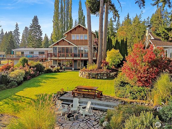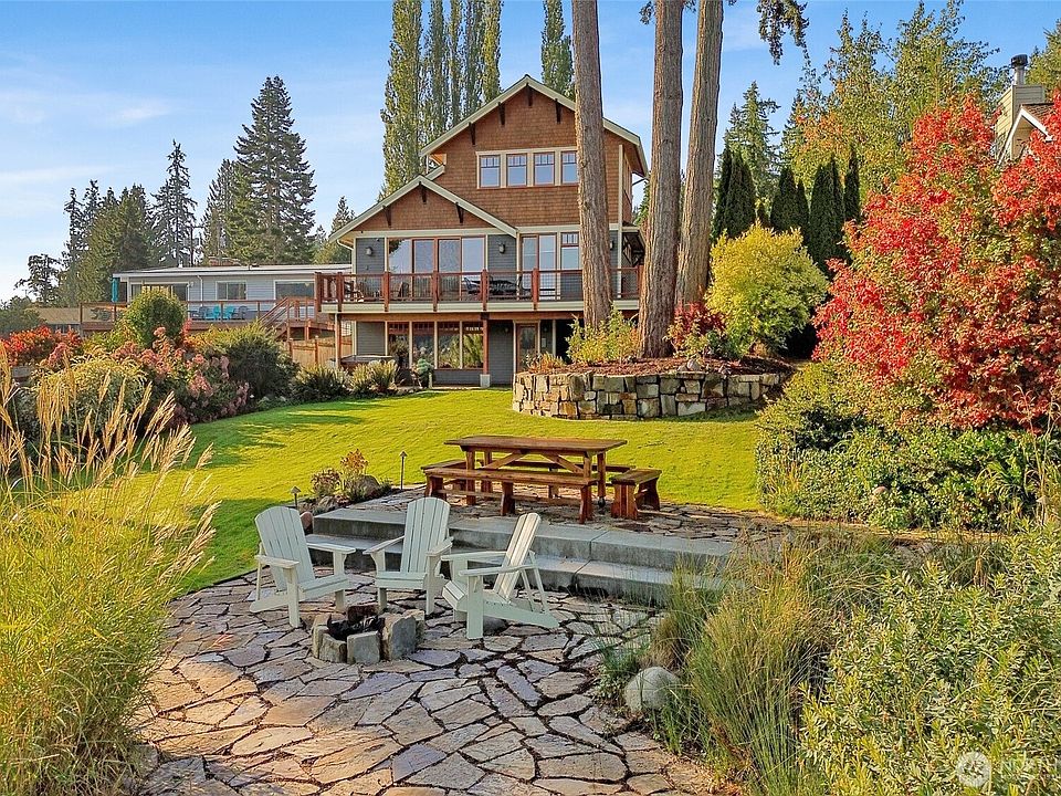 Stunning Lake Whatcom Waterfront Home in Old Geneva. Located on a private non-through lane, this custom built 2010 home has quality craftsmanship & fine woodwork throughout. Vintage reclaimed wide-plank fir floors, cherry cabinetry, walnut built ins & custom fir windows & trim on every level. Thoughtfully designed Chefs kitchen & beautiful upper level family room/ double office/library. Lower level great room opens onto patio & lakeside yard w/ beach & new dock. New heat pump/ furnace/AC. Three car garage w/ charging station & vast storage above. Yard behind garage holds possible potential for another small home or DADU. Meticulously maintained and move in ready. A quiet, sunny, in-town oasis just a short walk to Geneva Elementary!
