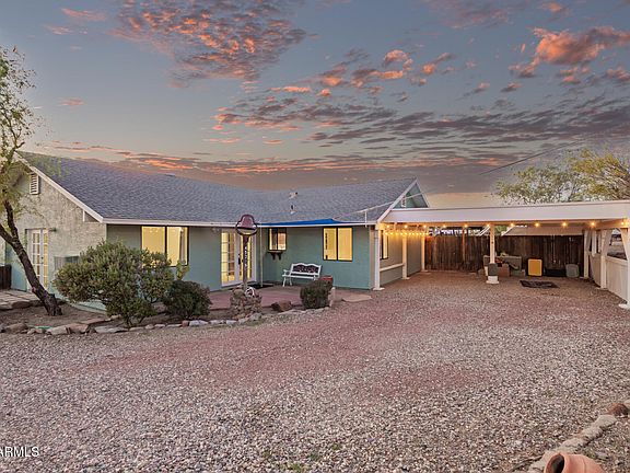 4.6 acre, flat, fenced with 2188 sf 3/2 home updated kitchen,revese osmosis,no HOA.360 degree mountain views, perfect sunset views and peaceful surroundings.Would make an amazing horse property! Private well,RV cover w/hook ups. water-electric and could easily be converted to a horse barn.Ride your horse,mountain bike or hike into Tonto National Forest 10 mins away.10 mins to I-17.