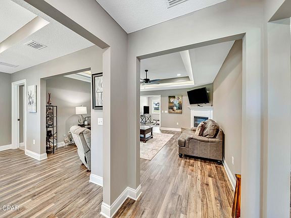Welcome home to this stunning property in the sought-after non-HOA community of Bylsma Manor Estates. Ideally located just minutes from the brand-new Publix, this 4-bedroom, 2-bathroom home is completely turn-key and ready for its next owner. The entire interior was freshly painted with top-grade PPG paint, and the home was meticulously built by Paul Sims Construction with attention to every detail. The kitchen features granite countertops, stainless steel appliances, and crisp white cabinetry, while the open living area showcases tray ceilings with rope lighting for an added touch of elegance. Additional upgrades include a security system, thermoseal spray foam insulation, an irrigation system, and an outdoor shower perfect after a day at the beach. The primary suite is a must-see, offering a spa-inspired bathroom with three shower heads designed for ultimate relaxation. A spacious double-car garage provides extra storage, while the quarter-acre lot offers plenty of room to create your dream backyard retreat with space for a pool, storage building, or outdoor entertaining area. Conveniently located just 20 minutes from Tyndall Air Force Base and 30 minutes from St. Andrews State Park, one of the most beautiful beaches in Florida, this home combines comfort, quality, and convenience. Schedule your showing today—you will not be disappointed.