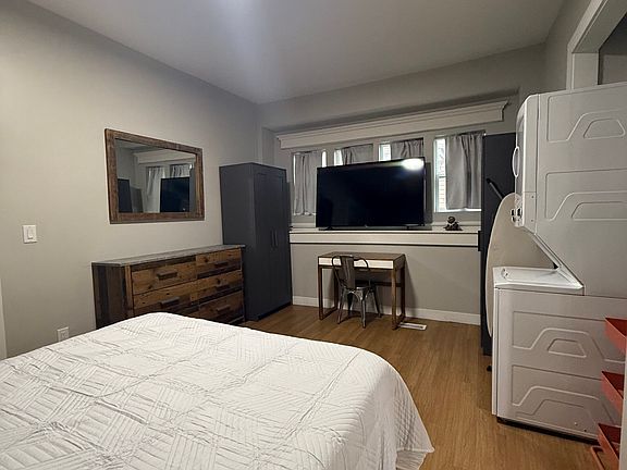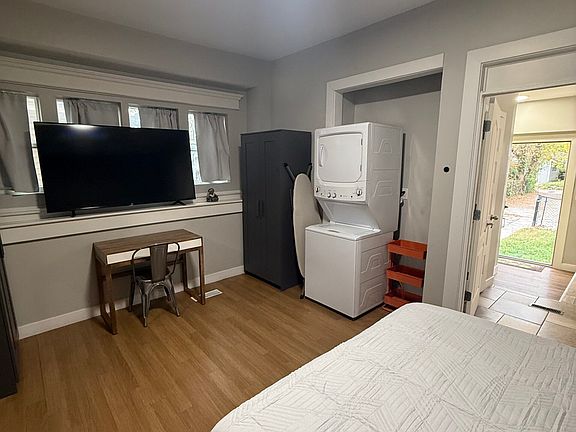 Enjoy modern conveniences such as in-unit washer and dryer, air conditioning, heating, and blazing fast WiFi. Entertainment is at your fingertips with a 65-inch Smart TV ready for your favorite streaming services. The private bathroom comes with starter toiletries and a hair dryer, while additional amenities like a full-size ironing board and personal storage add to the ease of everyday living.