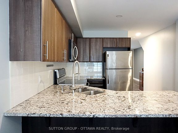Location like no other! This beautifully maintained lower-unit stacked 2-floor condo in an amazing location is perfect for a couple or a young family looking to rent in Orleans. Within walking distance to lots of stores, restaurants, coffee shops, entertainment, mosque, and easy access to pubic transportation right outside the door! The main floor features an updated kitchen with granite countertops and modern backsplash and faucet, with a breakfast area facing the front. Continue through to find a powder room and a spacious living and dining space facing the back with access to the outdoor balcony. The lower floor features 2 spacious bedrooms with lots of closet space and large windows, as well as a 4-piece bathroom with a shower and a tub! In-unit laundry and an additional storage room are also conveniently located downstairs. Laminate flooring throughout the house makes it easy to keep the house clean, with carpet only on the stairs. Unit comes with 1 assigned outdoor parking spot.