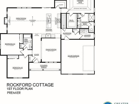 To be built home with ability to customize - Introducing the Rockford, an inviting Ranch home designed for both comfort and style and offers a thoughtful layout that maximizes space and functionality. At the heart of the home, the open-concept design of the Great Room and Kitchen creates a welcoming atmosphere. With a grand cathedral ceiling and a wall of windows, there is a sense of openness so that no matter how many people visit, you will never feel cramped. The Owners' Suite tucked away in the back of the home includes two spacious Walk-In Closets, as well as its own ensuite bathroom for added privacy. The Rockford also features two additional Bedrooms that offer flexibility for guests, a home office, or other uses to suit your needs. With thoughtfully designed spaces and a layout that promotes flow and functionality, this home is a perfect retreat for those seeking easy living without sacrificing style or comfort.