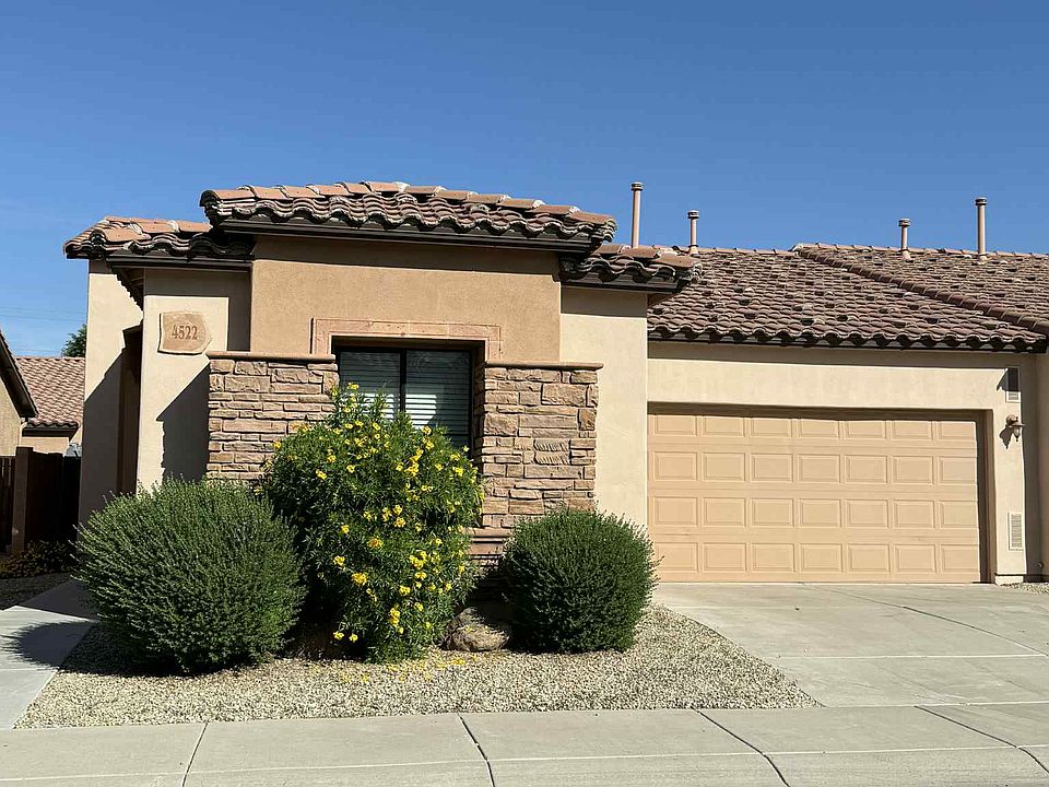 Available for immediate move-in! Gorgeous single level townhome in a beautiful gated community. This home has it all. Tons of natural light, upgraded counters, stainless steel appliances, washer and dryer, spacious rooms, large open living space, cute backyard area and access to the community amenities. 3rd bedroom can be used as a den/office space if preferred. It has double doors and is off of the living room. Split floor plan.