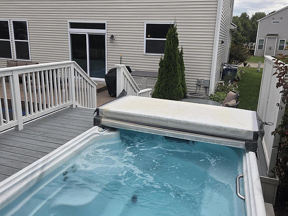 Ann Arbor School District Home in Pittsfield Township. Exciting, new and unique move-in ready home for your active famiy. Attached garage. HOA $62.50/month. This is a 4 bedroom, 4 bathroom home. Includes 2 bonus rooms, second story loft space backyard basketball court, patio, deck and swim spa. Basement recently partially finished to include a guest bedroom suite, complete with attached full bath and bonus room. Second floor includes 3 bedrooms, 2 full bathrooms, bonus room, loft space, and convenient second floor laundry room. Main level features open concept floor plan with luxurious kitchen, dining and living rooms, including a spacious island, beautiful mantle and gas fireplace, abundant light and tall ceilings. Outdoor amenities include sport court, swim spa and swing set. A 32x26 basketball/sport court surface, durable for backyard play of all ages. Swim spa is safely enclosed by a new wooden deck, featuring a lower deck with privacy panels and upper pool deck for maximum enjoyment of swimming experience.The 2,000 gallon swim spa is low maintenance, easily fits 6-8adults got hot tub relaxation with jets and waterfall, while deep enough for kids to jump into from the pool deck, with temperatures adjustable from 50-104 degrees for year round use. Stamped concrete patio is 30x10 feet for maintenance free outdoor relaxing.
