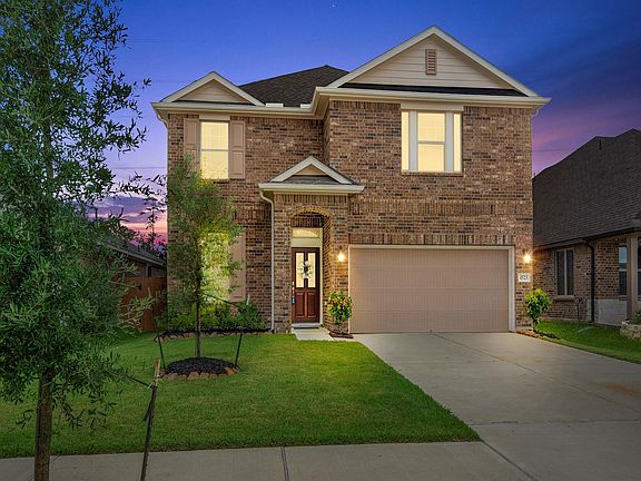 Welcome to your stunning new home nestled in the Villages of Harmony backing to a green space with no back neighbors. Lovely colors & warm floors lend a feeling of total perfection to this 4 bedroom, 2 story home. A wonderful blend of charm, personality & comfort with a flex room down (perfect office) & a game room up. Open floor plan w/wood floors in main living areas, family room w/vaulted ceilings. The upgraded island kitchen will impress w/bar seating, stainless appliances, quartz counters, custom patterned backsplash. Private primary bedroom down features a spa-like en suite with double sinks, oversized shower with bench + large closet. A game room, 3 bedrooms & 2nd full bath upstairs. Covered patio w/ceiling fan & large backyard with room for a pool. Harmony offers 2 pools, parks, splash pads, walking trails, tennis, basketball, fitness center + club house. Easy access to 99, 45, Hardy, 59, The Woodlands, airport, shopping, grocery, restaurants, top medical care & entertainment.