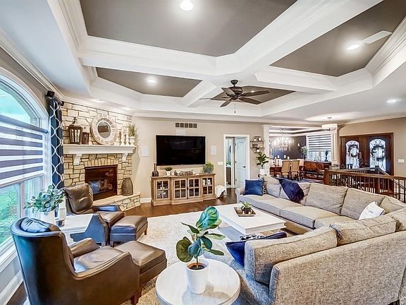 Discover the charm of this custom-built Dennis Ott ranch featuring an open floor plan & high-end finishes! Boasting 3 bdrms & 3 full baths, this spacious home in Whispering Oak Estates, is ideal for modern living. The heart of the home is the stunning kitchen, complete with breakfast room, center island & stainless steel appliances. Relax in the spacious great room w/ stone gas fireplace & eye-catching tray ceiling or entertain in the formal dining room. The primary suite includes an adjoining bath w/dual vanities & walk-in shower. 2-additional bedrooms provide ample space for family or guests. Don't forget the convenient 1st floor laundry & mudroom. The showstopper LL is ideal for entertaining or multi-generational living featuring a family room, full 2nd kitchen, workout room & a private 3rd bedroom with full bath. Step outside to enjoy the covered patio & beautifully landscaped surroundings. With a 2-car side-entry garage & thoughtful design throughout, this home is a must-see.