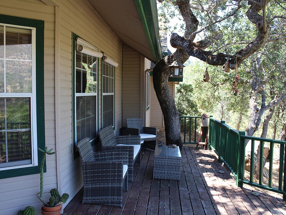 This secluded quiet home on a private drive is a perfect vacation rental or primary residence. surrounded by beautiful oak trees, mountain views, sounds of wildlife and a seasonal creek. Located minutes from the Sequoia National Park entrance and only 10 minutes to local hardware, grocery store and restaurants. The vaulted ceilings and windows through out the house home boasts of beautiful views and natural sunlight. Relax in the large soaking tub in the master suite. Plenty of room for parking and plenty of room to add a swimming pool. Back yard views of Eagle Rock. A small office located or extra storage located off the garage. Zoned for horses.