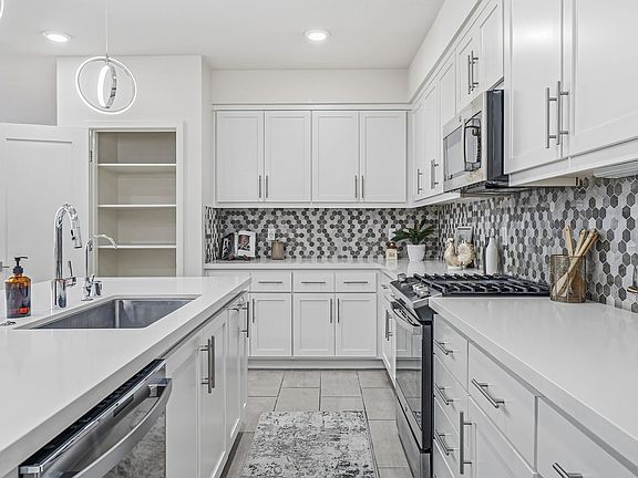 - Features: Counter - Solid Surface, Disposal, Gas Range/Cooktop, Kitchen Island, Pantry, Refrigerator, Updated Kitchen