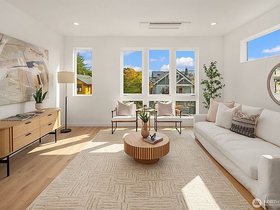 Last home available! Modern design, thoughtful details, and a coveted Wallingford address—this new construction by Ecoworks Homes showcases quality on every level. A bright, open layout with floor-to-ceiling windows and warm contemporary finishes creates an inviting atmosphere. Chef’s kitchen appointed w/ stainless appliances, custom cabinetry, and a peninsula island ideal for entertaining. Entry level offers two spacious bedrooms and a full bath, perfect for guests or a home office. Upstairs, a luxurious primary suite w/ spa-inspired bath and a generous laundry room. A rooftop deck with mountain and city views! Fenced yard with patio + designated EV parking space. All just a short walk to Gas Works Park, restaurants, and local favorites!