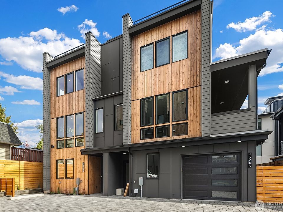 Striking modern design, impeccable details, and a coveted Wallingford location—this new construction by Ecoworks Homes delivers quality on every level. Step into a bright, open layout with floor-to-ceiling windows and warm, contemporary finishes. The chef’s kitchen features ss appliances, custom cabinetry, and a peninsula island that’s perfect for casual dining or entertaining. Step out onto your covered deck off the living room, perfect year-round use. Upstairs, a luxurious primary with a spa-inspired ensuite and generous laundry room. Enjoy sweeping city views from the rooftop deck. Includes a one-car attached garage EV-ready, fully fenced yard and patio. Walking distance from Gasworks Park, top restaurants, and neighborhood favorites!