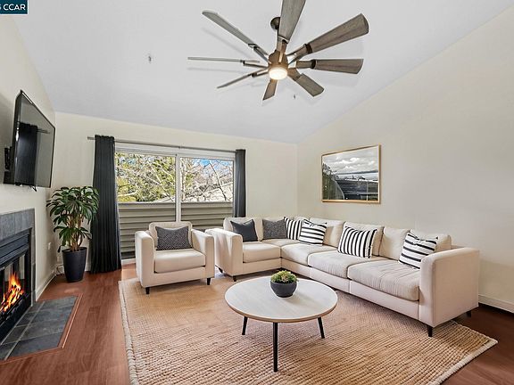 Lovely single level corner unit with no one above you. Exceptional 2 bedroom with 2 full baths, single car private garage, plus one additional dedicated parking space and inside washer and dryer. Incredible open concept with beautiful high ceilings, functional kitchen layout with lots of cabinets, stainless steel gas range and newer built-in microwave & dishwasher. Spacious living room, cozy fireplace and generous dining area. New central heat and A/C just a few months old at a cost of apx. $17,500, per the owner. Features all NEW interior paint & new bedroom carpets in January 2025. Great location surrounded by mature redwoods and flowering trees. Also features a large wrap around front patio, plus a second private patio off the primary bedroom. Super easy access to Newhall Park, featuring tons of trails, beautiful ponds, nice streams, picnic areas, play structure, large grass areas and a wonderful dog park. Also conveniently located near to shopping and lots of restaurants.