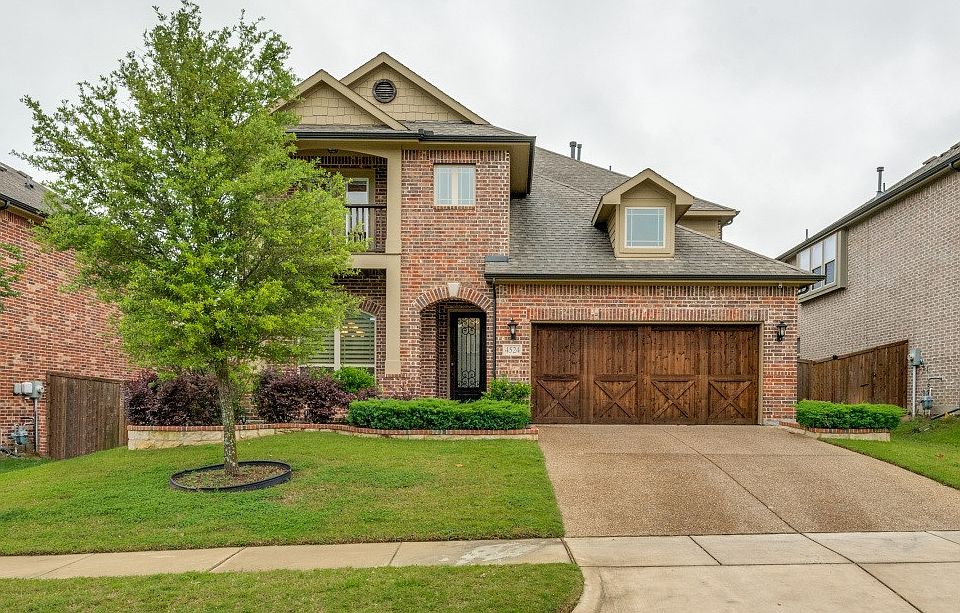 The IMMACULATE two-story home located across from green trail boasts 4 large bedrooms (2 master bed), 3.5 bathrooms, a formal dining room, game room PLUS media room W 120'' screen. The gourmet kitchen features custom cabinets, granite countertops, while the Expensive hand scraped hardwood floors add elegance to the entry, stairs, dining, family & kitchen areas. Oversized tile, gas fireplace, 8-ft solid Mahogany front door with rain glass & iron rod. Additional features include 2-inch blinds throughout, a tankless water heater, beautiful landscaping. EXTENDED COVERED PATIO to relax & entertain guests. Located within walking distance of Plano East Senior High, residents can also enjoy community amenities such as a playground, catch-and-release fishing pond, as well as access to hike and bike trail. Nearby Bob Woodruff Park offers even more recreational opportunities with trails, a fishing pier, picnic pavilion, playgrounds, sand volleyball courts, and more.