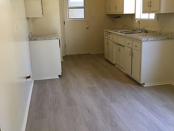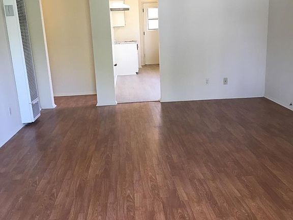 Very private 2 bedroom rear house. Step into the spacious living room, then into a large kitchen with dining area. There are beautiful laminate floors, vertical blinds, fresh paint. The kitchen has laundry hook-ups. The double attached garage with new roll up door is shared with the front tenant. Owner pays for water and trash. Tenant pays for electricity and gas. One car parking in attached shared garage. No smoking, and sorry but no pets.