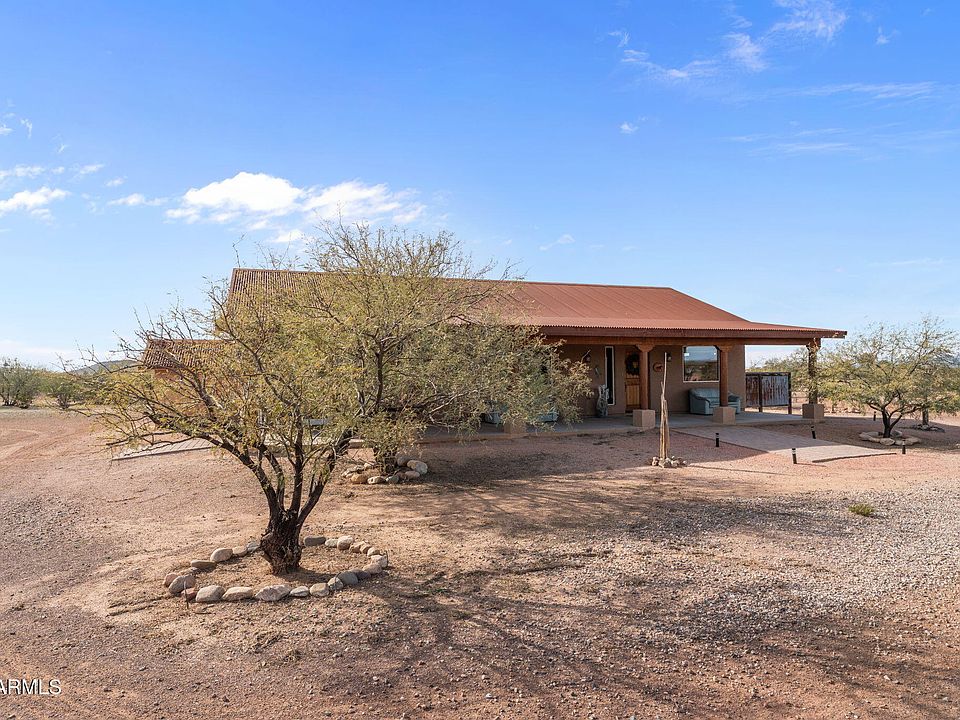 Set on 5+ flat, fully fenced acres, this move-in-ready horse property is a dream for the serious horseman. Pipe no-climb fencing surrounds the property. Secure gated entry offering privacy and peace of mind. The charming ranch-style home features full covered front and back porches, 2 bedrooms, 2 full baths, plus a den—perfect for an office. The horse setup is exceptional with covered stalls and a barn, both with water, a 90' x 200' turnout, and ample space to build a full-size roping arena. Additional covered areas allow for kennels or storage. RV or trailer hookups include 30, 50, and 110 amp service, plus wiring in place for a hot walker. A durable metal roof, shared well, and 1,500-gallon storage tank complete this well-planned property ready to enjoy on day one!