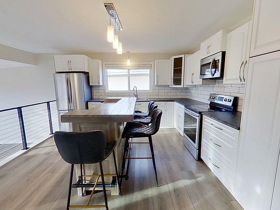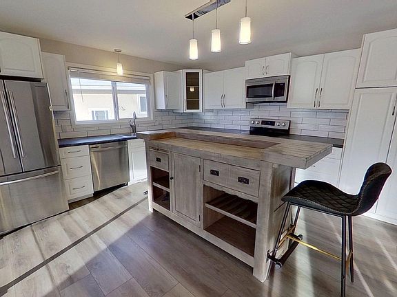 Professionally Renovated and modernized! Total square footage is 1557.55. Laminate flooring, air conditioning, spacious kitchen with island, large unique ensuite bedroom with large bathroom and walk in shower. Total of 4 bedrooms with extra large laundry room. total of 3 bathrooms. two with showers and one with floating bathtub. Impeccable heated garage surrounded with panelled pvc Trusscore walls and built in toolbox, led lighting. New shingle roof. Blown in insulation for efficiency improvements. Covered patio hangout area, great for future hot tub. Large fenced backyard with RV parking. Custom downstairs entertainment centre. Hide a bed mounted on wall for extra guests. Private dining area. Along with 2 separate sunk in living rooms. Newer concrete driveway and garage floor with drain. Walking distance to two schools and close to all amenities. Easy access to Hwy 16 on Southside of town.