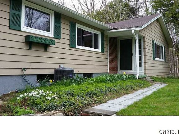 Spacious Ranch on large lot in natural Manlius setting with stream running behind home. This well constructed 4 bed/2 bath home features gleaming hardwoods, new windows, new driveway, insulation throughout, new paint, landscaping, appliances and much more. Large living room includes a brick woodburning fireplace & custom "built-ins" leading through French doors to a large kitchen/dining area w/ sliders to a large deck overlooking a large rear yard. All this w/ a great location, lower taxes & utilities. Taxes do not include Basic STAR reduction of $776.