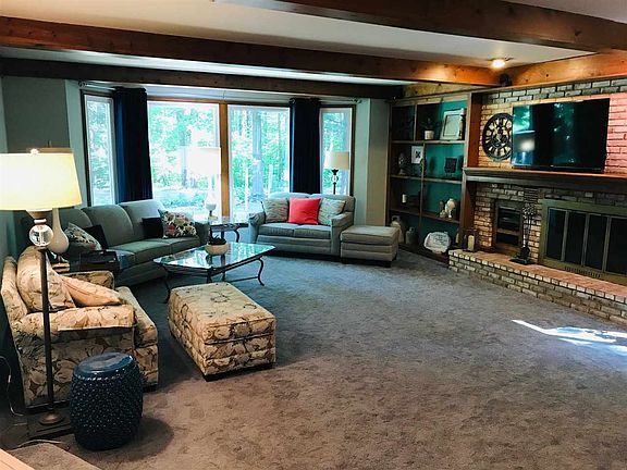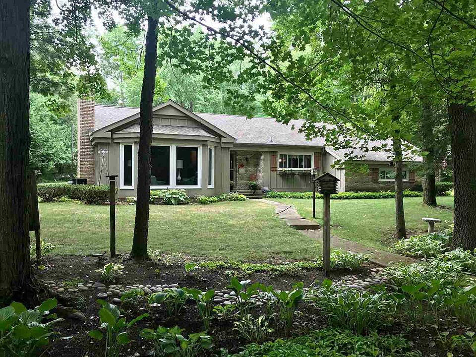 Beautiful and unique home in a peaceful wooded setting offering a gorgeous island kitchen with brick and wood accents, built in range/oven, breakfast or entertainment bar, and vaulted beamed ceiling, a spacious sunken living room with wood burning fireplace and built in shelving, newer double pane windows and roof, large master en suite with double closets, first floor laundry, central air, Generac generator, partially finished basement with a wall of storage, enclosed sun room, quaint brick patio area, and 2 car attached garage as well as a detached garage/workshop.Wooded acreage.