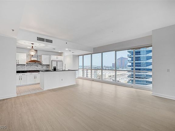 Dual Balcony Strip & Mountain View Rental - Step into luxury with this beautifully updated residence featuring fresh paint and new carpet throughout. A dramatic entrance welcomes you into the chic living space, highlighted by laminate wood floors in the living room and hallways. The kitchen boasts GE Monogram appliances, sleek finishes, and an open layout perfect for entertaining. Enjoy seamless comfort with power shades and two private balconies offering panoramic Strip and mountain views a rare find in this high-demand floor plan. This turnkey unit also includes one assigned covered parking space. Panorama Towers is located in the heart of the Las Vegas Strip, Allegiant Stadium, T-Mobile Arena and MLB stadium - An exceptional opportunity to own one of the most sought-after layouts at Panorama Towers don't miss it!