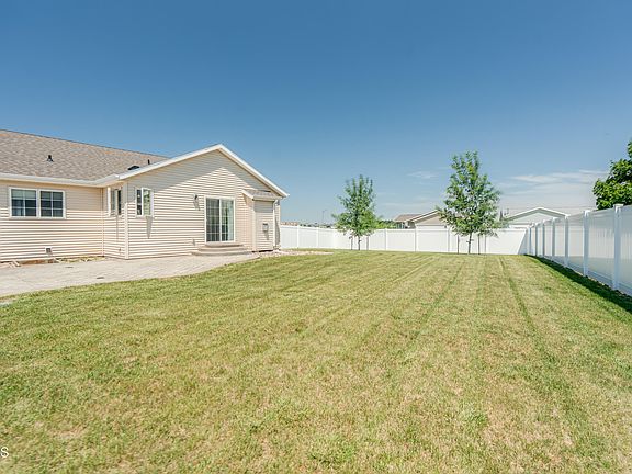 The primary suite includes a nicely sized walk-in closet and a private en suite bathroom. Step outside to enjoy the charming covered porch—perfect for soaking in those beautiful North Dakota evenings. The fully fenced backyard features low-maintenance vinyl fencing, underground sprinklers, and ample space to play, garden, or simply unwind.