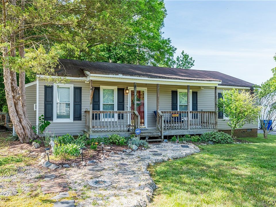 Calling all DIYers, fixer uppers, and investors!! Welcome to 4525 Glen Tara Drive in Midlothian! This lovely rancher is nestled in a quiet, established neighborhood and close to interstates, schools, shopping and dining! Arriving at the home, you will notice gravel driveway and covered front porch. Entering the home you are greeted with a bright and spacious living room with beautiful vinyl floors that carry throughout the home. Continuing on, you will find a nicely sized eat-in kitchen with mosaic tile backsplash and spacious dining area. Moving on down the hall, you will find the nicely sized full hall bathroom tile shower and open storage. There are two spacious secondary rooms with generous closet space and carpet flooring. The primary room also has carpeting, a spacious closet, and separate access to the hall bathroom. Heading outside, the backyard is fairly leveled, shaded by mature trees, detached shed and fenced in making it perfect for children or pets! You don’t want to miss out on this great opportunity schedule your private showing today.