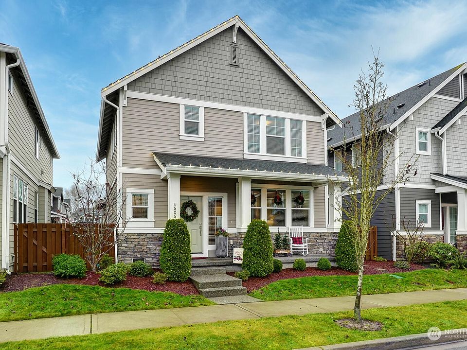 This stunning "Pottery Barn" inspired home in the coveted Riverfront Community has it all! The front covered porch welcomes you into a spacious, open floor plan w/brand new engineered hardwood flooring. This former model home features a granite/stainless steel kitchen w/gas cooktop & upgraded subway tile. New washer/dryer. Primary 5 piece ensuite upstairs w/2 additional beds and laundry. Newer upgraded designer paint throughout, extended driveway w/pavers, turf side yard w/putting green and oversized patio. Community trails connect to the scenic Lowell Riverfront Trail along Snohomish River. Community playground and park. Easy access to I-5 & the upcoming Riverfront Town Center featuring retail and restaurants. Pre-inspection available.