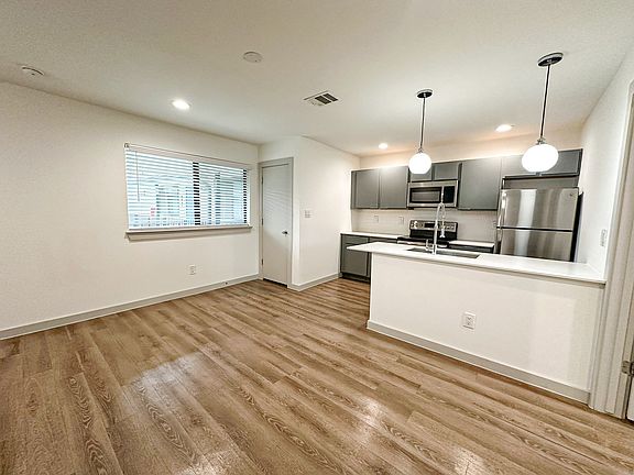 Laminate flooringRecessed lightingStainless steel appliancesQuartz countertopsIn-unit laundryUpdated kitchens