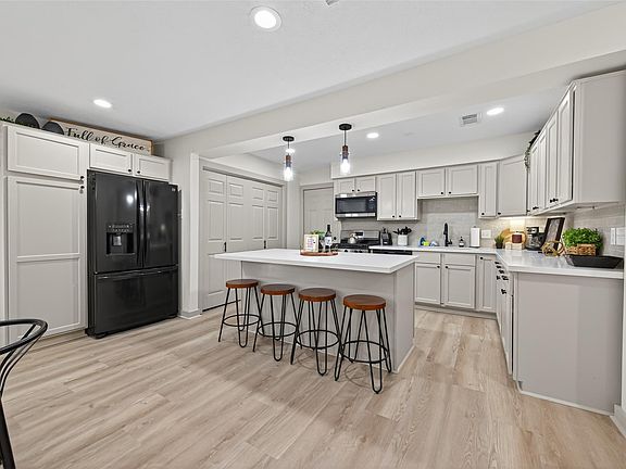 Step inside to find luxury vinyl plank flooring, fresh designer paint, an inviting living area filled with natural light. The chef’s kitchen features newly painted cabinets, stainless steel appliances, quartz countertops, and a stylish tile backsplash, making it the perfect place to create and gather.