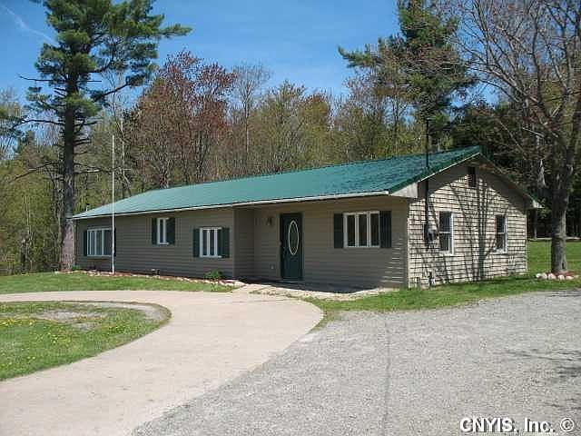 Country Home Stick-built ranch home 3BR/2BA situated in nice quiet rural setting on a lg. 1.19 acre wooded parcel near 1000 Islands. New flooring installed in large living room & all bedrooms on 5/8/15. Also includes huge newer 32'x 40' heated/insulated garage w/2 overhead doors, concrete floors, ideal for boat & car storage, etc. The buildings both have low maintenance newer metal roofs and vinyl siding. Circular driveway and a great backyard for campfires or other activities. The home is vacant and ready for move-in! $139,900. Call Matt Garlock (315) 771-6001.