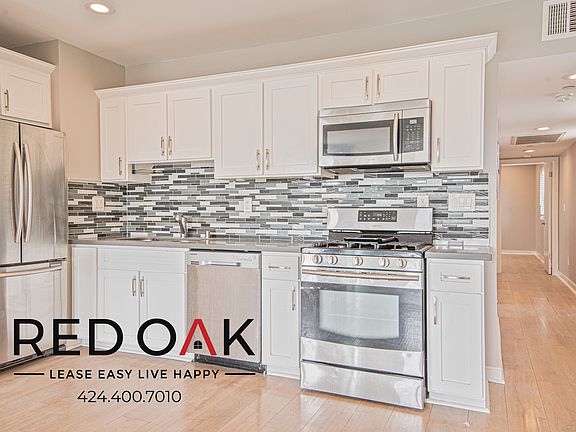 Incredibly Spacious Three Bedroom with Stunning Floors, Central Heat & A/C, Eat-in Kitchen, Stainless Steel Appliances, In-Unit Washer and Dryer, and Two Included Parking Spaces ~ In Prime Los Feliz! Key Features: Welcoming Charm: Step into a beautifully landscaped, modern development and enjoy the elegance of contemporary Hollywood living. Bright Spaces: Large windows fill the rooms with natural light, complemented by modern fixtures, hardwood-style floors, and spacious layouts. Year-Round Comfort: Stay cozy all year with a central heat and air system for perfect temperature control. Stylish Kitchen: Featuring custom hardwood cabinets, granite countertops, a trendy tile backsplash, and stainless steel appliances. Eat in Comfort: A charming dining area is perfectly situated in the kitchen for convenient meals. Rest Easy: Relax in bedrooms with large windows and ample closet space (including a large walk-in), welcoming natural light and comfort. Luxurious Bathrooms: Enjoy spa-inspired bathrooms with soaking tubs, well-lit mirrors, and custom hardwood vanities. In-Unit Laundry: Make daily chores easier with your own washer and dryer. Parking: Enjoy the convenience of two included parking spaces (as a tandem), providing easy access and added value to your living experience. Pet-Friendly: Pets are welcome with a small deposit and monthly pet rent. Prime Location: Surrounded by coffee shops, restaurants, and markets, with Erewhon, Los Angeles City College, Descanso Stairway, and Santa Monica Hwy nearby. Make this fantastic space your new home! Available for an immediate move-in. LEASE TERMS: One Year Lease Pictures and descriptions are of EXACT unit Unit Comes UNFURNISHED Staged Photos to offer ideas for how to use the space. Square Footage is approximate. Showings may not be 1-on-1. Furnishings do not include small household items shown. All information must be validated on Red Oaks Website since 3rd party websites can feed incorrect information.