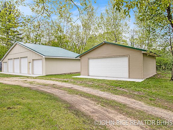 Wow! 18.63 acre paradise. 2860 sqft, completely remodeled, 5 bedrooms, 2 full baths, featuring vaulted ceilings, Huge 40ft covered deck, 6 outbuildings, temperature-controlled storage and more. This is the ONE you have been looking for! The north side borders the Pere Marquette Trail system. Close to several popular lakes and award-winning fishing. The 18+ acres is known to be a popular spot for deer, turkey, and more. Close enough to town and highways for easy access to amenities yet nestled quietly in a beautiful mix of hardwoods and evergreens providing excellent environment of peace and tranquility. Hurry this one will not last long!