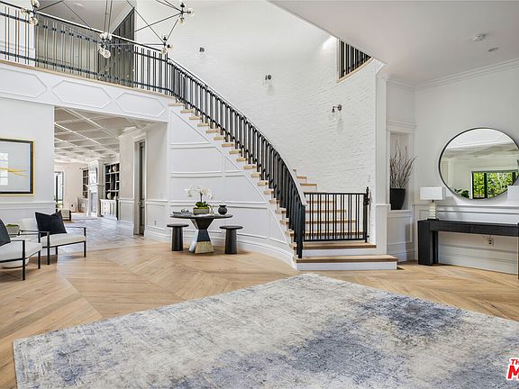 Escape to luxury in this magnificent newer construction home located in the highly sought-after neighborhood in Encino just south of the boulevard. This stunning estate boasts 9 bedrooms, 10 bathrooms, and a transitional design that exudes elegance and comfort. The grand entrance with soaring ceilings and curved staircase sets the tone for this remarkable home. Enjoy privacy and security behind gates and park all your vehicles in the two separate garages, four covered spaces total, with plenty of room to park in the circular driveway. The chef's kitchen is a true delight and is sure to impress with its top-of-the-line appliances and ample counter space, along with a huge walk-in pantry. The primary suite is located upstairs and features his and her walk-in closets and two separate bathrooms and a nook off the primary that could be used as an office or nursery. The four additional bedrooms upstairs offer plenty of space for family and guests, while the two bedrooms downstairs are perfect for live-in staff. Conveniently, there are both upstairs and downstairs laundry rooms. The home also features a home theater, perfect for movie nights and a sauna. The outdoor living space is equally stunning and features a large flat lot, zero edge pool/spa with sunken fire pit, putting green, cabana, outdoor kitchen, and fire pit area. There are two separate structures in the backyard: One is the, 2-story guest house with two bedrooms upstairs and a full kitchen / living room downstairs. The second is a recently completed gym/basketball court complete with bathroom and roll up doors. Don't miss this rare opportunity to own this one-of-a-kind estate in the heart of Encino.