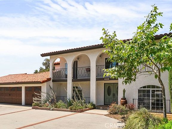 Standing proudly on nearly half-acre with mountain views, this distinctive two-story home offers privacy and space along a peaceful street lined with towering conifers. Classic arched entrance, circular driveway, new faux-walnut carriage doors, and native California landscaping signal a home built for discerning buyers.