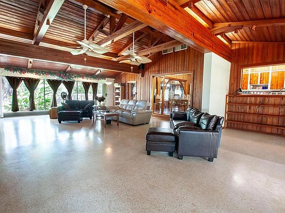 Discover this spacious 3-bedroom, 2-bathroom home offering over 3,100 sq. ft. of living space on a large, oak-shaded lot in Arcadia. Built in the 1940s with an addition in 1955, this property combines timeless character with thoughtful modern updates. Step through the inviting entryway into the light-filled Great Room featuring soaring ceilings, exposed beams, Terrazzo floors, and impressive windows that invite the outdoors in. A cozy wood-burning fireplace with a stone surround provides the perfect setting for a den, home office, or family gathering space. The formal dining room leads to a spacious kitchen outfitted with stainless steel countertops, ample cabinetry, and modern appliances. A versatile bonus room off the kitchen offers endless options for a kitchen dinette area or it’s current use as a butler’s pantry with easy access to the patio. The home features two oversized master suites with Terrazzo floors, generous closet space, and a convenient Jack-and-Jill bathroom with walk-in shower, plus a third guest bedroom and full bath. Additional highlights include a large laundry room, detached garage, storage barn with a oversized carport, charming pump house, and 2022 shingle roof. Recent updates make this home truly move-in ready: Split unit installed in 2023 for additional comfort, Water softener system installed in 2025, Septic tank and drain field replaced in 2022, Improved attic insulation for energy efficiency. With privacy fencing, a spacious yard, and convenient location, this property offers the perfect blend of charm, space, and modern livability. Don’t miss your chance to own this one-of-a-kind home with both historic appeal and modern upgrades!