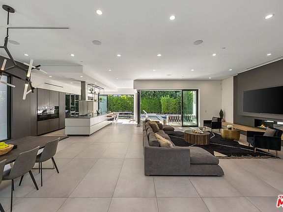 Located on a quiet street in Studio City, this stunning contemporary residence is privately nestled behind gates and mature hedges. Spanning almost 4,000 square feet, the 4-bed, 5-bath home showcases clean lines, curated materials, and high-end finishes throughout. Designed with both comfort and entertaining in mind, the main level features expansive living, dining, and kitchen areas that flow seamlessly outdoors through oversized aluminum sliding glass doors. Soaring ceilings, sleek fixtures, and designer details create a refined yet welcoming ambiance. The gourmet kitchen is equipped with premium appliances, custom cabinetry, a large island, and an adjoining breakfast nook. Upstairs, the primary suite offers a spacious walk-in closet, balcony lounge, and spa-like bath with a steam shower, Italian-designed vanities, and a dedicated make-up vanity. A water softener system enhances daily living by filtering out hard metals to nourish skin and hair. Each additional bedroom includes its own en-suite bath and generous proportions, ensuring both privacy and luxury for family and guests. The private backyard oasis is ideal for entertaining, complete with a sparkling pool and spa, built-in BBQ, low-maintenance turf, and multiple lounge areas. The home is fully outfitted as a smart residence, with integrated controls for music, lighting, spa, climate, and security systems. Located within the top-rated Colfax School District and just moments from shops, restaurants, and the newly opened Sportsmen's Lodge, this residence perfectly blends modern design, functionality, and convenience.