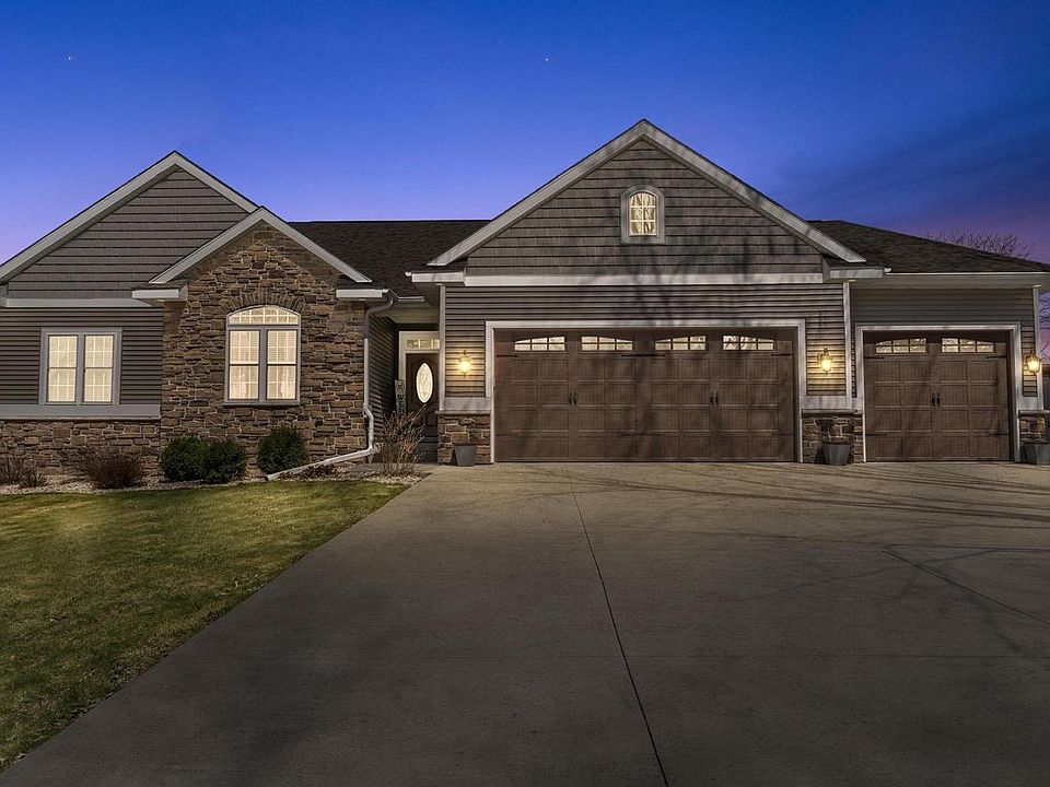 Gorgeous, Dane County home, located in the Town of Windsor, Wisconsin. Modern 3 car garage, with 5 bedrooms, and 3 bath home, nestled within walking distance to Lake Windsor Golf Course, offers a quiet life on East Oak Lane, with multiple local amenities. Highlighted in this home: a beautiful kitchen, wine bar area, pantry, mudroom, fireplace, luxurious spatial bedrooms, walk out basement, bathrooms and walk-in closets. Peaceful viewing from decks and your home. Entertainment room with ample space and executive bar makes your home the central place to be! Sprawling fenced in backyard has your kids and dogs safely running to their hearts content. Late evening campfires brings a full day to a relaxing end. Golf cart friendly neighborhood.