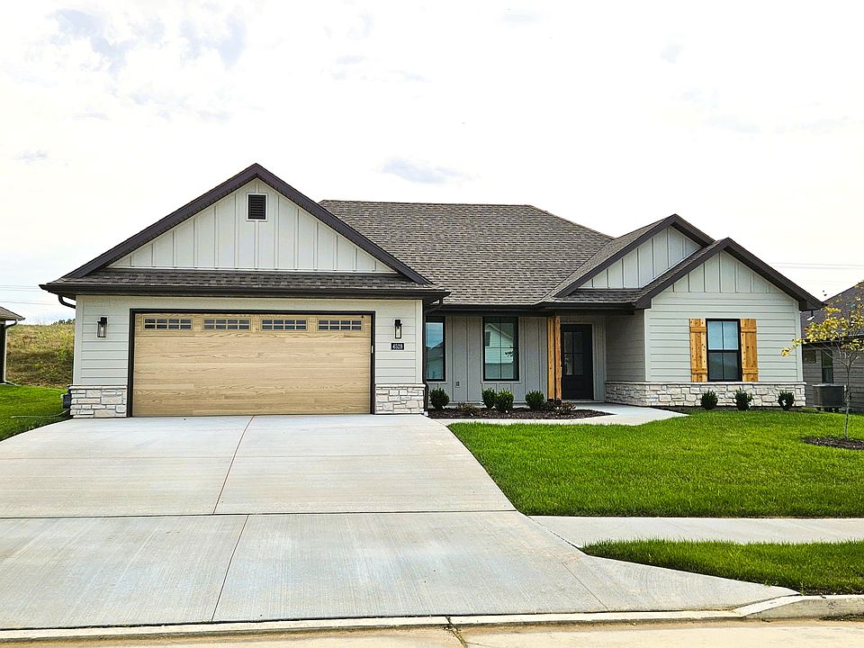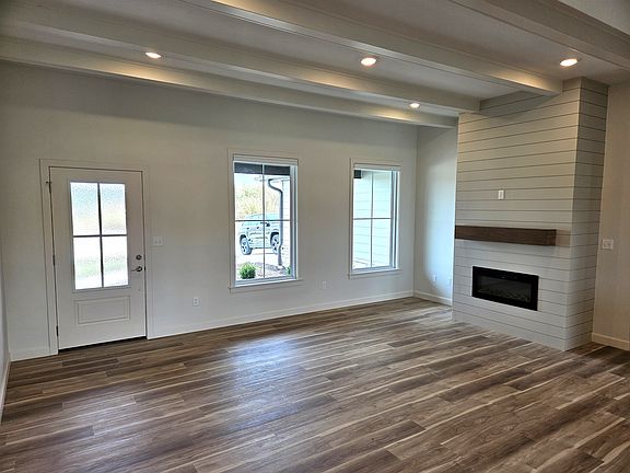 6-month lease available! This custom new home in the exclusive The Brooks subdivision is ready for you! This charming and warm home with exclusive touches like Kitchen Aide 5-burner gas range, center island, stylish matte-granite kitchen counters, custom cabinets with soft-close drawers and cabinet drawers, beautiful and low-maintenance luxury vinyl wood flooring throughout. You'll also feel at home with the decorative wood ceiling beams in the living room with cozy electric fireplace, primary bedroom with chandelier and gorgeous wood trimmed tray ceiling, large walk-in closet with custom shelving with pass-through to laundry room, sumptuous primary bathroom with dual sinks, quartz counters, and custom-tiled shower with glass door and rain-style showerhead, built-in "drop zone" bench right off garage, split bedroom design, hall bath featuring dual sinks and quartz tops, coat and linen closets, and lots of LED recessed lighting throughout. Outside you'll love the upscale but homey exterior with covered front porch, oversized 2-car garage, covered back porch, private backyard, fully irrigated yard and water softener. Other highlights include yard maintenance included, access to the majestic neighborhood pool, and the exclusivity of living in The Brooks! You are only about 10 minutes from downtown Columbia, 10-15 minutes from the University of Missouri campus/hospital, and 5 minutes to HWY 63/I-70. Reach out today to see this special home for you!