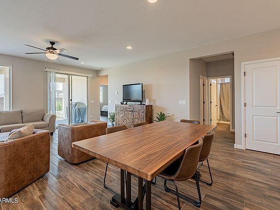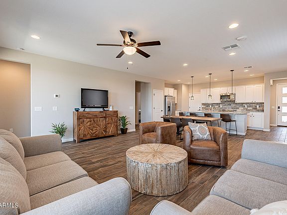''BETTER THAN NEW'' Welcome to resort living in Wickenburg Ranch! This is a barely lived in ''Thrive'' model by Shea in the Silverado Neighborhood, 1518 sq ft 2 Beds 2 Bath and a den with a split floor plan. Gorgeous kitchen, large granite island/breakfast bar. All appliances convey including washer/Dryer.Beautiful White cabinets and upgraded wood look wide plank tile throughout entire home. Upgraded ''Shea Shower, You will love the big open great room with plenty of room for entertaining. BBQ on your private patio with a fully landscaped, low maintenance back yard that is fully fenced including a rare privacy block fence at the rear of the yard. Large Primary bedroom with walk in closet, private bath and double vanity. Furniture can be available under a separate bill of sale. Owner Age