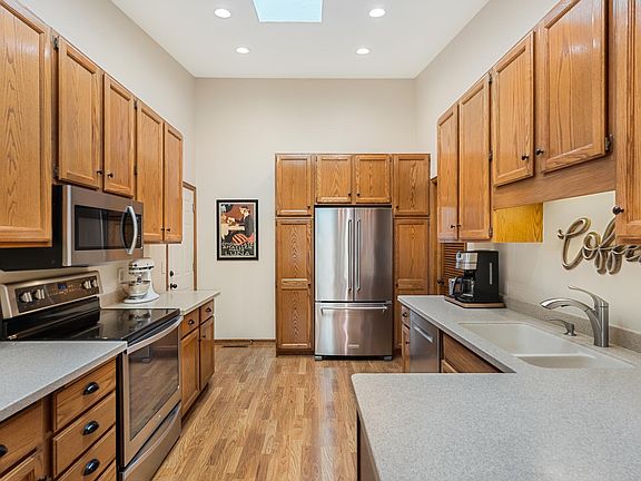 Experience the perfect balance of privacy, comfort, and convenience in this beautifully maintained townhouse. The vaulted kitchen, with its skylight, stainless steel appliances, and LG solid-surface countertops, is as functional as it is stylish, while the open dining area makes hosting effortless. The inviting living room, complete with a cozy electric fireplace and reading nook, creates the perfect space to unwind. Main-level living is easy with a bedroom, ¾ bath, and laundry all on one level, while a sun-filled den and bright sunroom offer spaces to work, read, or simply relax. Upstairs, your private retreat awaits—a spacious suite with multiple closets, custom built-ins, a sitting area, and a spa-inspired bath featuring a jetted tub and skylight. Warm natural woodwork and an oversized garage with epoxy floors add thoughtful touches throughout. Outside, enjoy coffee on your private patio, wave to neighbors from your welcoming front porch, or take a short stroll to nearby parks, trails, shopping, and dining. This move-in-ready home is more than a place to live—it’s a lifestyle.