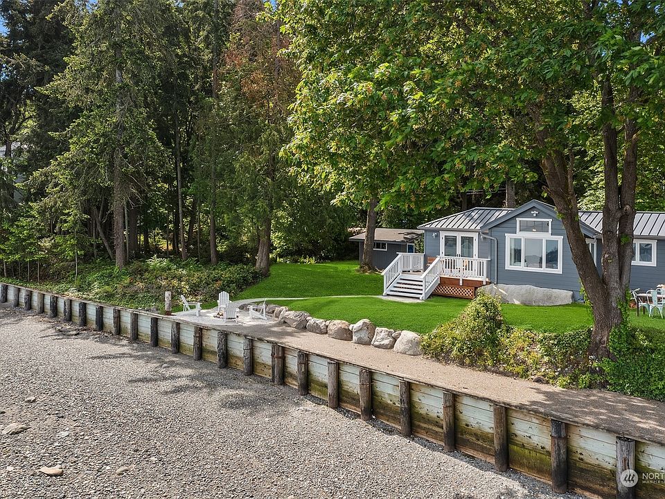 Step into your serene island oasis in this charming Cape Cod Cottage nestled along 87 feet of tranquil low bank waterfront. Revel in the breathtaking vistas of Puget Sound, Cascade and Olympic Mountains. Meticulously renovated, this enchanting abode is primed for immediate enjoyment. Updates include, new roof, foundation, heating and air conditioning, electrical, plumbing, kitchen and baths. 4 bdrm septic, amazing landscape. Cast a line from your bulkhead, launch your kayak, indulge in beachcombing while eagles soar overhead. Host gatherings on the beachside patio, cozy up around the outdoor fireplace for intimate evening conversations. Small shed & carport. Property boasts prime location near Pt Robinson lighthouse. Your dream home awaits.