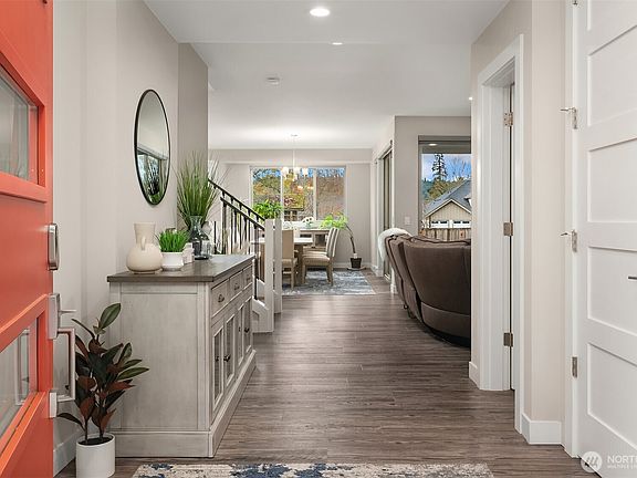 Discover this stunning home on one of the largest lots in Serene Estates! This east-facing contemporary shines with custom finishes, a long private driveway, hardwood floors & central AC. The gourmet kitchen features quartz counters, gas cooktop, stainless appliances & upgraded cabinetry. Main-level office/bedroom with full bath is ideal for guests or multigenerational living. Luxurious primary suite includes a spa-inspired bath & Elfa closet. Three additional bedrooms plus bonus room offer flexibility for media, play or work. Covered patio opens to an expansive, private backyard perfect for entertaining. Three-car tandem garage provides ample storage. Walk to downtown Carnation, schools, parks, and trails. Pre-inspected for peace of mind.