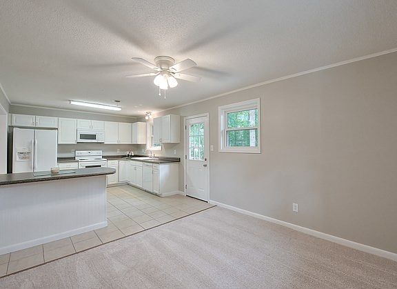 Fabulous brick ranch on corner lot with new HVAC, new carpet, new fixtures and fresh paint throughout! Pretty new ceiling fan in living room! Kitchen with tiled floor, new faucet, island, built-in micro, lots of cabinets and fridge that stays! Large dining area with new ceiling fan! Owner's bedroom with ceiling fan has half bath with tile floor and handy medicine cabinet! Both guest bedrooms with ceiling fans, one brand new! Spare bath has tiled floor and new fixtures! Large laundry area and mudroom! Step out the back door onto large deck that overlooks expansive back yard! Great home for first time homebuyer or young family! Easy access to I-20, shopping and restaurants!
