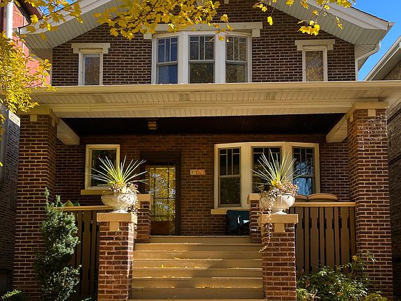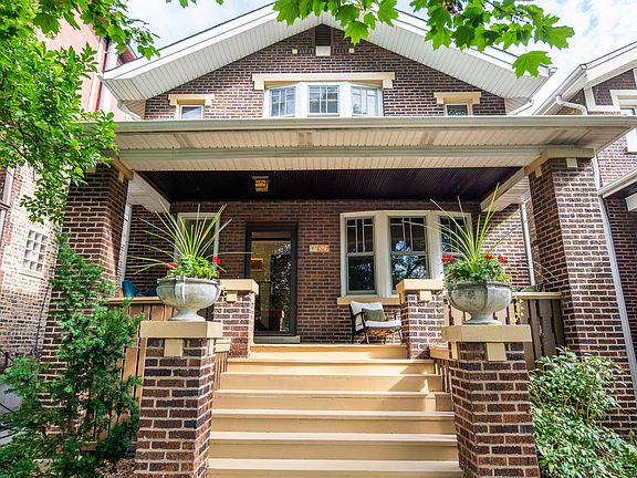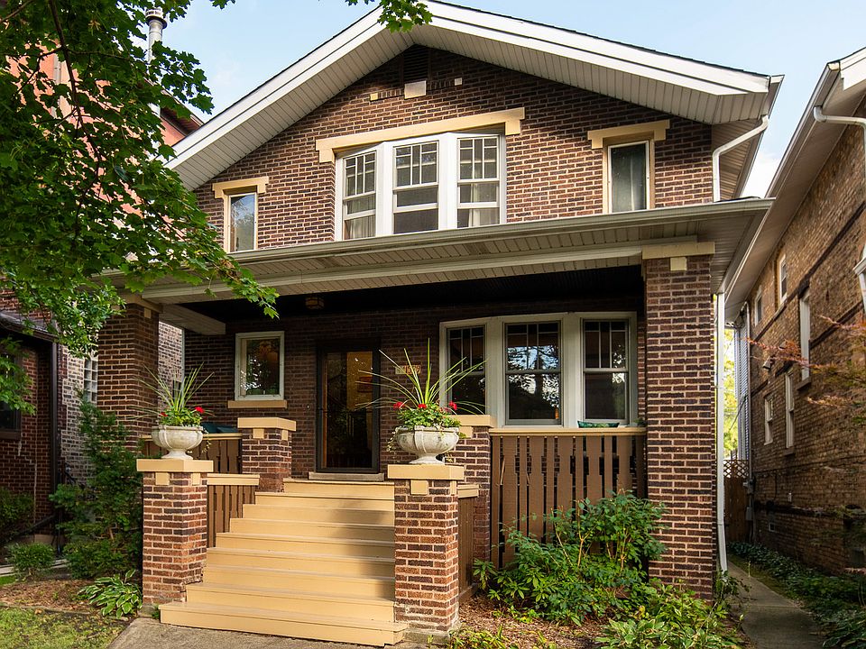 Nestled in the picturesque Ravenswood Manor neighborhood, this historic 1915 Arts & Crafts gem seamlessly blends timeless architectural details with thoughtful modern updates. Just 1-1/2 blocks from the Brown Line public transportation, this 4-bedroom, 2-1/2 bath home offers the perfect combination of space, character and convenience in one of Chicago's most sought-after communities and the coveted Waters School. Step inside to find original woodwork, built-ins, new hardwood floors and four original Prairie Style stained glass windows that reflect the home's origins. The well-considered floor plan features four bedrooms on the second level, including a spacious primary suite addition that offers modern comfort and a dramatic vaulted ceiling. You'll also find a sunny home office or potential 5th bedroom on the main floor. The updated kitchen and bathrooms have been renovated with today's lifestyle in mind. Newer windows throughout improve energy efficiency without sacrificing character. Solar panels provide 4.5 kW of electricity, and the garage is pre-wired for a Level 2 electric vehicle charger- a sustainable home in an amazing neighborhood. Additional highlights include a welcoming front porch perfect for enjoying the neighborhood ambience, a dedicated bike room, a 2-car garage and a spacious, part-finished basement offering abundant storage and office/hobby/leisure space. You'll also find green grass, tranquil, cozy backyard that is perfect for entertaining, chilling or games. This is a rare opportunity to own a truly special home in a vibrant, walkable community known for its strong schools, tree-lined streets, and close-knit neighborhood feel.