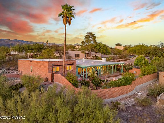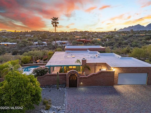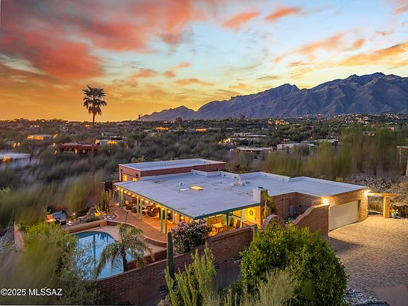 Rare opportunity in Sunrise Presidio Village. Impeccable 4 bed, 3 bath home, unobstructed mountain/city views. Living room & patio overlook city, sunsets. Formal dining has mountain views, family room with fireplace, cherry kitchen cabinets, quartz countertops, breakfast nook. Split floor plan for multi-generational family. Award-winning primary bath featured in Tucson Lifestyles. Plantation shutters, custom window coverings. Tile/carpet, 2-car garage, electric vehicle charging, engineered paver driveway, outdoor seating areas, large covered patio, cozy private fire pit. Heated pool w/power track cover. Extensive mature landscaping. Set back on cul-de-sac, private enclosed yard. Near Sabino Canyon, the Loop, dining/shopping. Excellent layout for entertaining and private enjoyment.