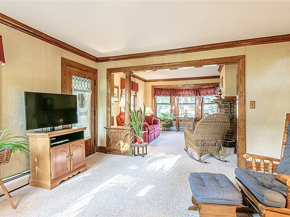 Three bedroom, 1.5 baths colonial situated on NEARLY 7 ACRES. The home features an amazing front porch and a back & side patio for days or evenings to relax & take in nature. Step inside the front door to 2 sitting areas, one with a gas fireplace. The kitchen is spacious & it overlooks the 4 season sunroom with a beautiful view of the backyard. The dining area is a wonderful size for entertaining. Convenient 1st floor laundry room.. The second floor has 3 generous sized bedrooms & a full bath. 2 car detached garage & barn/outbuilding with horse stalls. Endless updates! Total Sq.Ft. includes approx. 312 Sq.Ft in 4-Season rm. DELAYED NEGOTATIONS 10/3 AT 12PM.
