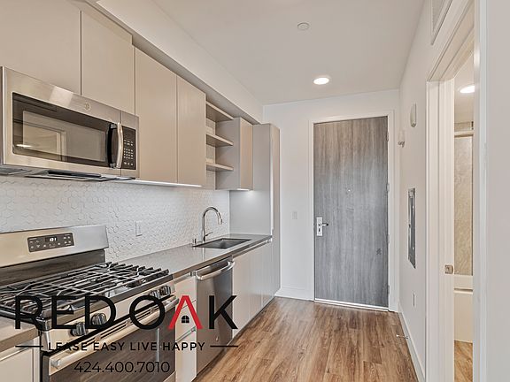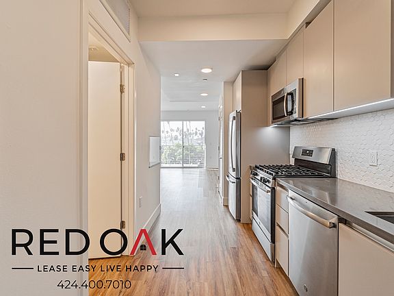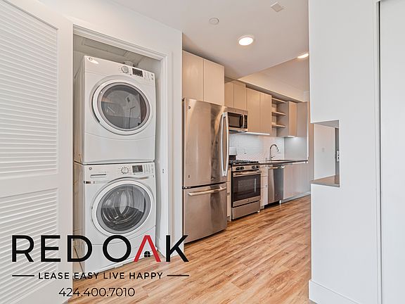 Fantastic, Modern Studio Featuring a Private Balcony, Central Heat & A/C, Recessed Lighting, Stainless Steel Appliances, In-Unit Washer/Dryer, and Parking Included ~ In Vibrant Koreatown! Unique Features: Spacious Open Concept: Boasting hardwood style floors, enhanced by recessed lighting. Naturally Lit: Enjoy large windows and lots of natural sunlight, accentuating the hardwood-style flooring and spacious living area. Private Balcony: Step onto your private balcony to enjoy the fresh air and California sun. Climate Control: Central Heat and Air will keep your new home comfortable no matter the temperature outside. Clever Storage Solutions: Stay organized effortlessly with a convenient closet featuring custom storage solutions. Elegant Kitchen: Featuring custom-built hardwood cabinets, stainless steel appliances, granite countertops and a stylish backsplash. Spa-Inspired Bathroom: Boasting modern fixtures, a soaking tub with a convenient shower head, hardwood vanity, and a well-lit mirror. In-Unit Laundry: A full-size GE washer and dryer are included for your ultimate convenience. Parking and Charging Stations: Your peace of mind is ensured with one provided parking space, and low-emission car charging stations are available on-site. Bike storage areas are also provided for your convenience. Pet-Friendly Retreat: Embrace the small pet-friendly community, welcoming cats and dogs up to 35 pounds with a small deposit and monthly pet rent. Enjoy grounds designed for your furry friends, including a pet grooming bath station on-site. Community Amenities: Relax in the landscaped deck area with BBQ gas grills available for all residents. Experience the convenience of a trash chute on each floor, saving you time and effort in your daily routine. Vibrant Koreatown Living: Immerse yourself in one of the most vibrant and exciting neighborhoods in Los Angeles. Koreatown offers a diverse blend of cultures, cuisines, and entertainment options. Enjoy a rich history and architectural heritage, surrounded by iconic buildings and landmarks. Proximity to the 101 Freeway and Beverly Blvd ensures seamless access around town. Don't miss out on the opportunity! Available for an immediate move-in. LEASE TERMS: 1 Year Lease Pictures and descriptions are of a Model Unit Floor Plan and Details may vary Square Footage is approximate. Showings may not be 1-on-1. Listed pricing and special offers are only valid for new residents. Pricing and availability are subject to change at any time. Red Oak does not warrant or represent that image renderings on this website are an accurate representation of every floor plan available at the Property. Floor plans may vary unit by unit and by location at the Property. Please contact the Leasing Office to schedule a tour of the Property and the particular unit you are interested in. Pricing and availability are subject to change at any time.