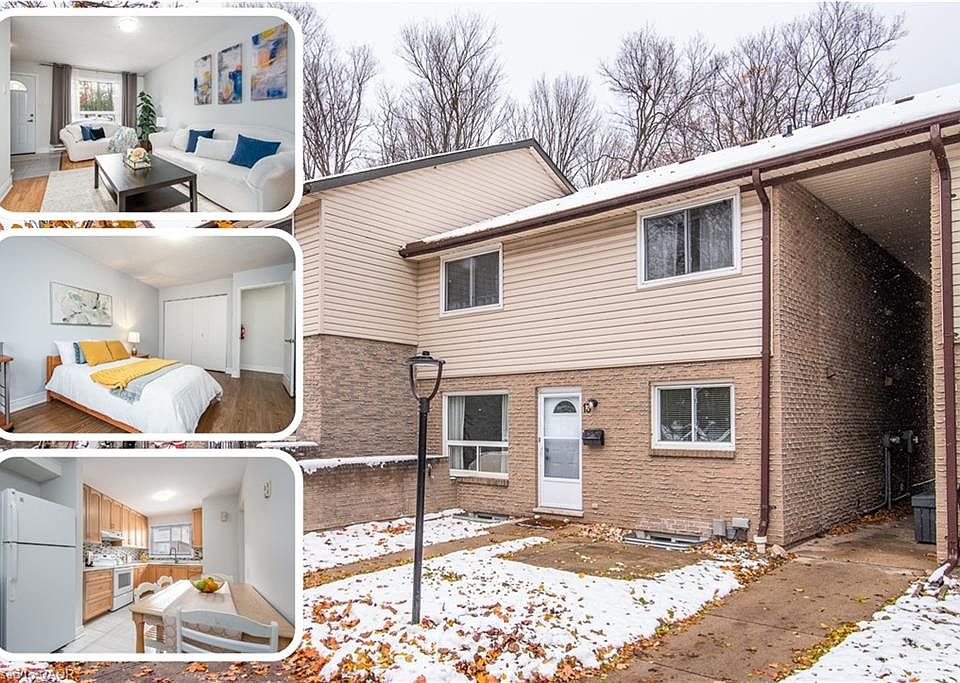 Welcome to this well-maintained townhome in a professionally managed complex surrounded by mature trees and green space. The complex is known for its strong reserve funds and excellent upkeep—ideal for families, investors, or downsizers seeking a low-maintenance lifestyle with peace of mind. Over the years, the home has received numerous important updates, including electrical wiring and panel, plumbing, windows, roof, and more, ensuring comfort, safety, and efficiency for its next owners. The main floor features a bright living room with a large bay window that fills the space with natural light, a functional kitchen with plenty of cupboard space, and an eat-in dining area perfect for everyday meals. Main-floor laundry adds extra convenience. Upstairs you’ll find two spacious bedrooms and a full bathroom. The finished basement offers great flexibility with two legal bedrooms, each with proper egress windows, a full bathroom, and a separate entrance—ideal for students, extended family, or guests. The property currently sits vacant, making it move-in ready or easy to rent immediately. A valid City of Waterloo RENTAL LICENCE is already in place, providing a fantastic opportunity for investors seeking turn-key rental potential. Located near Conestoga Mall, St. Jacobs Farmers Market, the University of Waterloo, and several parks and trails including Waterloo Park and Albert McCormick Community Centre Park, this home offers the perfect balance of comfort and convenience. Public transit and LRT access are nearby for easy commuting. Whether you’re starting out, investing for the future, or simplifying your lifestyle, this updated townhome delivers location, flexibility, and lasting value.