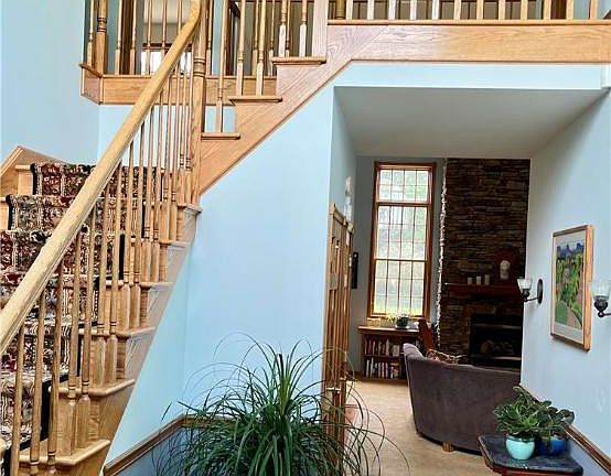A beautiful home in the Nazareth Area School District, the 1st floor features a large foyer, dining room and in-home office. The family room makes for an inviting gathering space with a stone gas fireplace, tall windows and vaulted ceiling. Enjoy cooking in the gourmet kitchen with gas cooktop, double ovens, pull-out pantry, center island, granite countertops and a new refrigerator. A bright eat-in area overlooks the private patio. Half bathroom, mud room, pantry and storage closet completes the 1st floor. The 2nd floor has a grand master BR with a sitting area, walk-in closet and ensuite bath with double sinks, Jacuzzi tub and new shower. 3 bedrooms, full bath and large laundry room complete this level. Great for children and pets, the fenced yard with patio, perennial gardens, and hot tub will be your private retreat. Recent updates include:roof, HVAC and water treatment systems. The oversized 2-car garage has room for sports equipment, gardening tools, a workbench and more!