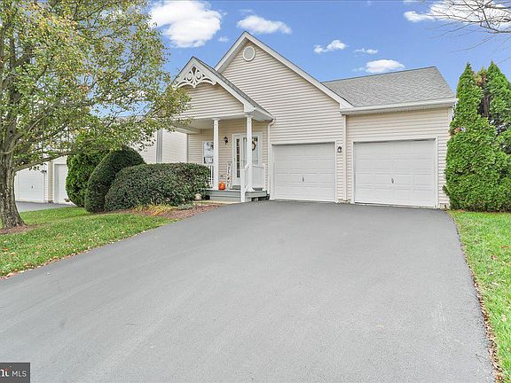 From the moment you walk up to this inviting porch and step inside the front door... you will be in love with this home! Enjoy hours of relaxation on the front porch either with your morning coffee, afternoon book or evening neighborhood watching! Once inside you will be happy to see the spacious living room and dining room combination. What a great area to entertain your new neighbors and old friends! The kitchen is so perfect! The bright white cabinets, island space for food prep, and large breakfast area is always the heart of the home! Connected nicely to the kitchen area is the huge family room! There is so much natural light in this room! And there are sliding doors that take you onto the new back deck! What a fabulous view!! When you want that quiet place to be outside, this is where you'll seek! You won't find a nicer back yard and open space behind you! Wait until you see the primary bedroom and updated bath! WOW! That truly sums it up! The owners have added a frameless shower stall with a seat, two sink vanity, new flooring and linen closet that are to die for! What a retreat at the end of the day! The laminate flooriing and huge walk-in closet add to the perfection of the primary suite! The second bedroom is a very nice size and the hall bath co-located with the bedroom offer a nice guest room/option. The basement is huge and unfinished. Let you grandchildren ride their bikes or skate around in the basement.. seriously! There's tons of room! All of this if the wonderful community, the Villages of Penn Ridge! Make your appointment and get packing!