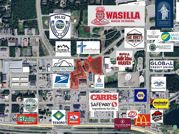 Development opportunity in the heart of Wasilla. 4.42 Acres of prime commercially zoned land between E. Bogard Road and E. Swanson Ave, east of Main Street. Robust traffic counts and nearby frequented businesses. Buy now before the Wasilla Main Street Rehabilitation Project brings even more traffic, stop lights/signs, infrastructure, and vitality to the already bustling/growing area. See photos.Nearby Businesses/Community Institutions include: United States Postal Service Matanuska Valley Federal Kredit Union Sherwin Williams Carrs Safeway Wasilla Middle School Wasilla High School Wasilla Police Department Alyeska Therapy Center Inc. Good Shepherd Lutheran Church Wasilla Public Library City of Wasilla - City Hall O'Reilly Auto Parts Tesoro Holiday First National Bank Alaska Dairy Queen McDonald's NAPA Auto Parts And More! Two lots are being sold together or potentially separately. Parcel ID 19533 510 E Bogard Road, 99,317 SF Parcel ID 61161 453 E Swanson Ave, 93,218 SF